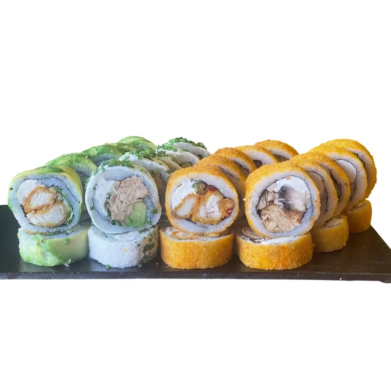 Pollo apanado, queso crema, cebollin Envuelto en Palta