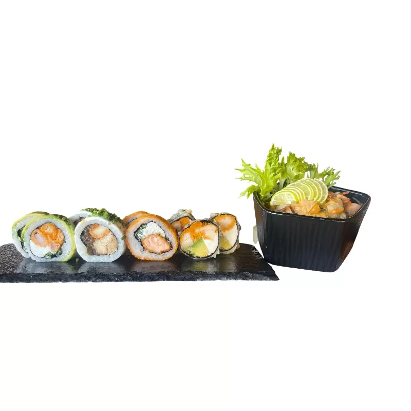 Camarón, queso crema, cebollin, envuelto en Palta.